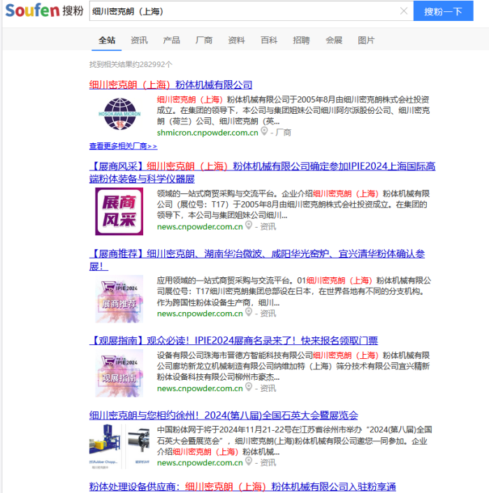 •關(guān)鍵詞精準(zhǔn)覆蓋:針對 “細(xì)川密克朗(上海)” 等高頻采購關(guān)鍵詞,實(shí)現(xiàn)搜索結(jié)果首頁優(yōu)先展示,當(dāng)客戶搜索相關(guān)需求時,可直接跳轉(zhuǎn)至細(xì)川密克朗企業(yè)展臺,快速獲取產(chǎn)品詳情與技術(shù)咨詢?nèi)肟,推動詢盤質(zhì)量提升 40% 以上。
