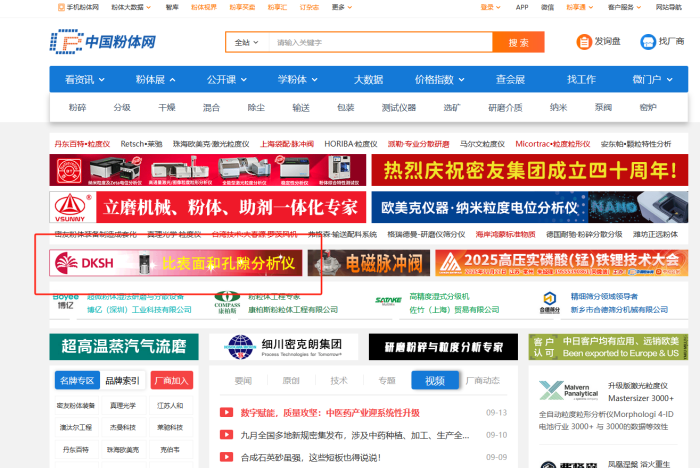 針對大昌華嘉的產(chǎn)品線特點(diǎn),粉享通制定了精準(zhǔn)的展示策略:在粉體網(wǎng)首頁動(dòng)態(tài)廣告位、科學(xué)儀器專區(qū)等重點(diǎn)位置重點(diǎn)呈現(xiàn)其核心產(chǎn)品,為用戶打造 “一觸即達(dá)” 的品牌信息獲取體驗(yàn)。這種多觸點(diǎn)的布局方式,一方面加速了用戶與品牌之間的連接進(jìn)程,另一方面通過廣告位投放、專題推薦等多渠道協(xié)同引流,成功吸引更多潛在客戶發(fā)起咨詢,使產(chǎn)品詢盤量得到明顯提升。