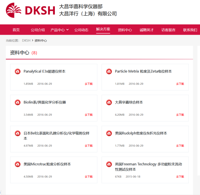 •資料中心展示:粉享通為大昌華嘉開設(shè) “資料中心” 專屬專區(qū),為客戶提供了一個(gè)集中、便捷的專業(yè)資料獲取平臺(tái)。該頁面清晰陳列了其代理的各類高端科學(xué)儀器(如能譜儀、粒度分析儀、孔隙分析儀等)的產(chǎn)品樣本與技術(shù)文檔。客戶可以輕松瀏覽文件名稱、大小及發(fā)布日期,并通過“去下載”按鈕快速獲取所需的詳細(xì)資料。這一功能強(qiáng)大的資料庫極大地便利了客戶深入了解產(chǎn)品特性、技術(shù)參數(shù)與應(yīng)用方案,是客戶獲取專業(yè)知識(shí)、進(jìn)行設(shè)備選型與科研決策的重要支持工具,有效體現(xiàn)了公司致力于為客戶提供全面技術(shù)服務(wù)的價(jià)值。