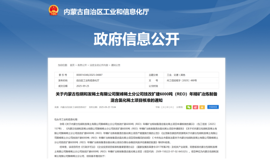 包鋼和發(fā)獲準(zhǔn)擴(kuò)建6000噸稀土分離產(chǎn)能,專注鑭鈰與鐠釹產(chǎn)品
