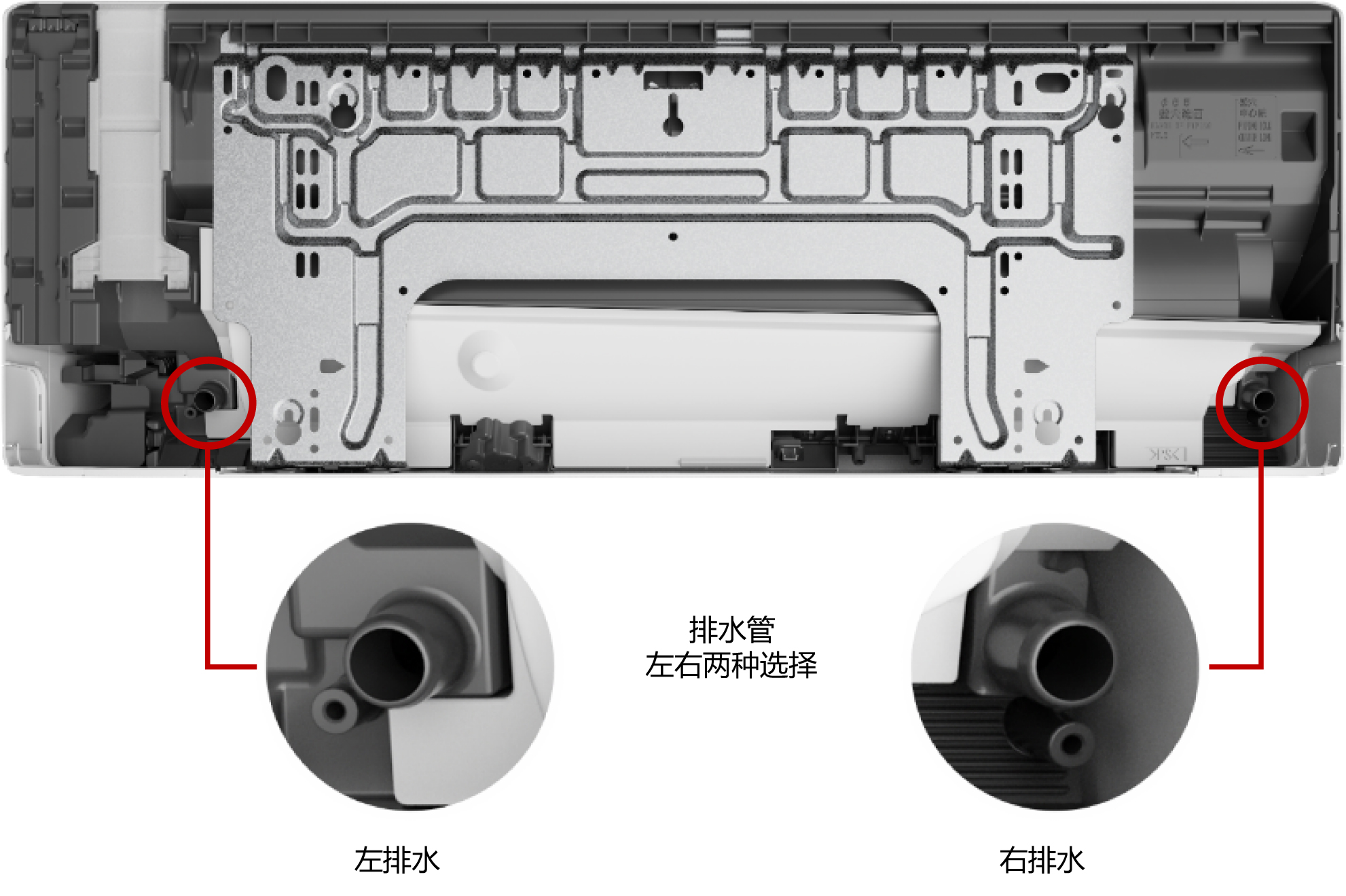 室內機可隨意調整左右排水方向,安裝定位具有更大的靈活性。