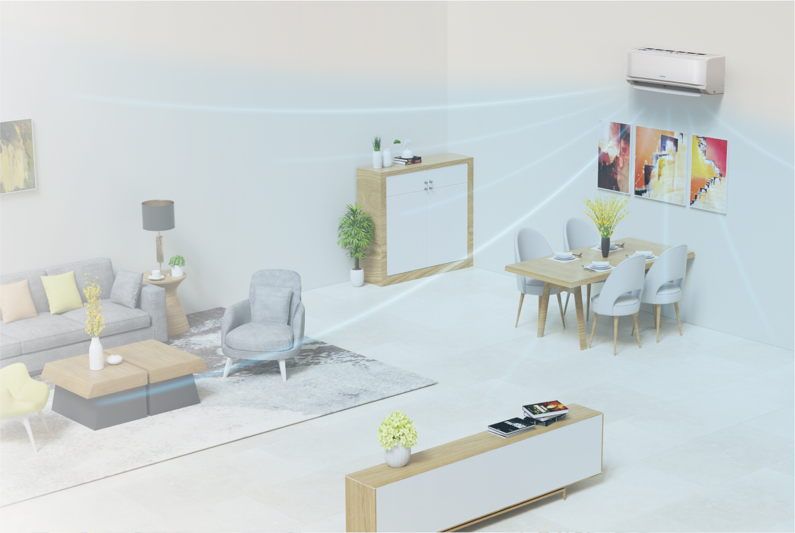 具備遠距離送風功能,幫助有效、均勻地將空調氣流送達您房間的區域。