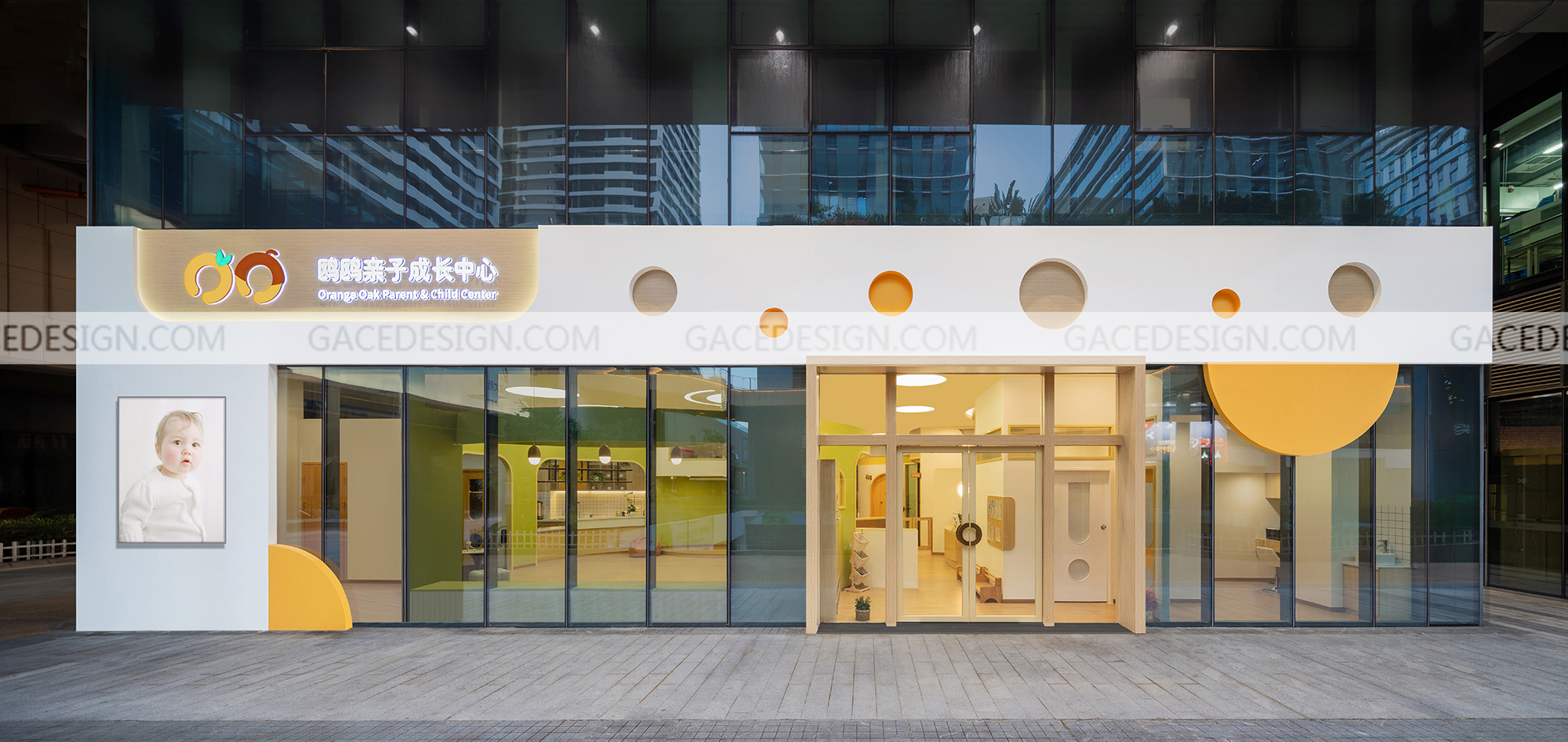 設(shè)計策略:以簡潔弧形為主題元素,傳遞力量和守護。創(chuàng)造更多與他人交流的空間并且連接社區(qū)產(chǎn)生更多有趣的多元育兒平臺。設(shè)計的突破在于整理并且升級迭代一個多元的Life Box。成為一個涵蓋育兒學(xué)堂,輕食,咖啡,兒童托管,瑜伽,花藝,賦能,主題活動派對,沙龍,游樂等復(fù)合功能為一體的共生島嶼。放棄傳統(tǒng)布局思維來展示空間維度,弧形從地面到立面貫穿整個空間,讓步入場所的方式形成豐富的遞進、延伸、轉(zhuǎn)換的層次變化。也能進一步的拉近鄰里距離,這是個有關(guān)陪伴和共同成長的場所。