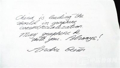海姆最后強(qiáng)調(diào):“石墨烯不是一個材料,而是一批材料。我不是一個企業(yè)家,但以一個科學(xué)家的身份很負(fù)責(zé)任地告訴你,投資石墨烯這個產(chǎn)業(yè)是沒有問題的。但是,一定要有耐心!”