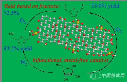 此外,該團(tuán)隊在氧化石墨烯催化糖類轉(zhuǎn)化制備5-乙氧基甲基糠醛(Green Chem.,2013, 15(9):2379)、果糖脫水制備HMF(ChemCatChem,2014,6,728)、HMF醚化制備5’(氧代-雙(亞甲基))二-糠醛(Catal. Commun.,2015,59,127)等方面也取得了階段性成果。