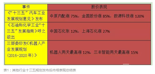 其他行業(yè)十三五規(guī)劃發(fā)布后市場表現(xiàn)總結(jié)