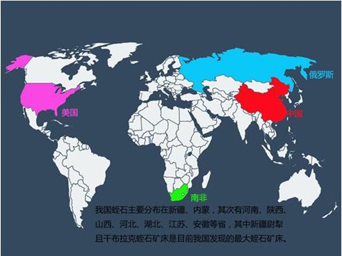 蛭石在自然界中并不是以單體孤立存在,而是與土壤中的粘土混合在一起,而且無(wú)法從粘土中分離。蛭石礦是一種稀缺資源,其中美國(guó)蛭石儲(chǔ)量為9×10-7t,南非蛭石儲(chǔ)量為7.3×10-7t,這兩者占到西方世界總量的95%(2015年)。