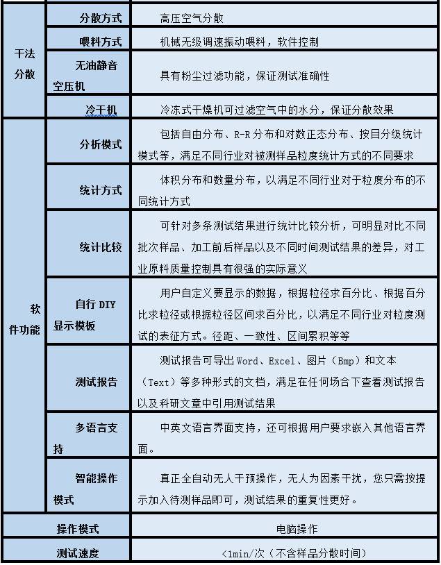 NKT6100-B是我公司傾力研發(fā)的最新產(chǎn)品,自上市以來贏得了廣大客戶的一致好評。NKT6100-B采用國際最先進(jìn)的Mie式散射原理和匯聚光傅立葉變換光路。高密度探頭及全量程無縫銜接測試方法,保證了測試結(jié)果的準(zhǔn)確性和重復(fù)性。獨特的濕法循環(huán)分系統(tǒng),保證顆粒保證測試過程中無顆粒沉積現(xiàn)象,測試排水后無廢液積存現(xiàn)象,保證了第二次測試精度,使測試結(jié)果更真實可靠;干法分散采取了直線噴射分散方法,樣品經(jīng)過高壓氣體分散后垂直向后飛行,避免了待測顆粒二次團簇,同時采取了管道無殘留設(shè)計,保證了測試不同樣品的準(zhǔn)確性。優(yōu)越的光路自動校對系統(tǒng)、干濕一鍵切換系統(tǒng)、干法電腦遠(yuǎn)端控制喂料系統(tǒng)等精心設(shè)計彰顯出NKT6100-B獨特優(yōu)勢。