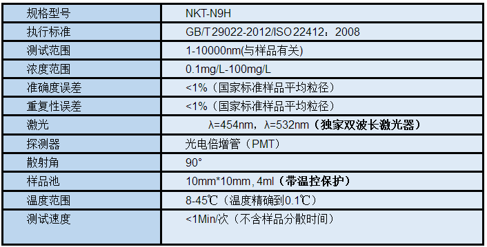 NKT-N9HH是我公司最新推出的基于動態(tài)光散射原理的納米粒度儀。它采用高速數(shù)字相關(guān)器和專業(yè)的高性能光電倍增管作為核心器件,具有快速、高分辨率、重復(fù)及準(zhǔn)確等特點,是納米顆粒粒度測定的首選產(chǎn)品。