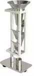 粉末放入上部組合漏斗中的篩網(wǎng)上,自然或靠外力流入布料箱,交替經(jīng)過布料箱中的四塊傾斜角為25°的石英玻璃板和方形漏斗,最后流入已知體積的圓柱杯中,呈松散狀態(tài)。然后稱量圓柱杯中的粉末的質(zhì)量。