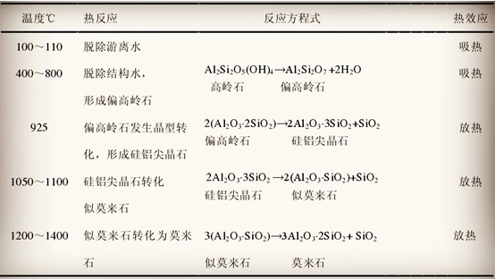 高嶺土在加熱過(guò)程中會(huì)發(fā)生脫水、分解、析出新物相等物化變化,較為復(fù)雜,一般認(rèn)為,高嶺土在加熱過(guò)程主要包括兩個(gè)階段:脫水階段和脫水后產(chǎn)物的轉(zhuǎn)化階段。