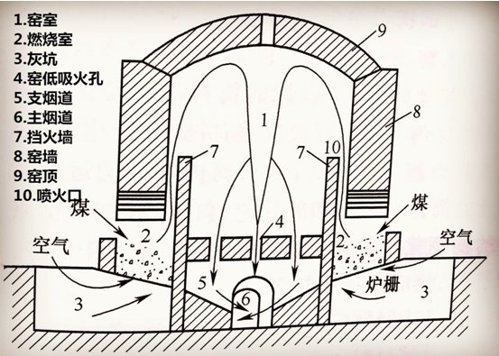 倒焰窯結(jié)構(gòu)及工作原理示意圖