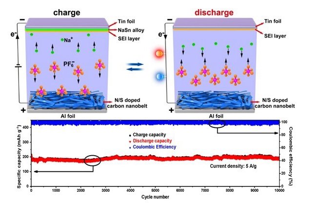 鈉離子電容器的結(jié)構(gòu)及工作示意圖及其長(zhǎng)循環(huán)性能