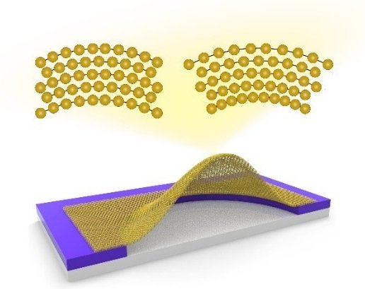 二維材料原子級厚度、低的面外剛度特征極其容易發(fā)生面外失穩(wěn),產(chǎn)生褶皺、鼓泡、圓筒卷以及折疊等微結(jié)構(gòu)。這些面外變形與二維材料自身彎曲剛度大小密切相關(guān)。受測試技術(shù)及納米尺度樣品操縱技術(shù)的制約,一直以來二維材料彎曲剛度實驗測量是一個技術(shù)挑戰(zhàn)。因此,研究人員大多沿用經(jīng)典薄板理論中彎曲剛度(D)與彈性模量(E)、厚度(t3)的關(guān)系來估計材料的彎曲剛度。張忠、劉璐琪與美國德克薩斯州奧斯丁分校教授黃瑞、清華大學教授徐志平合作,發(fā)展了普適性測量少層二維材料彎曲剛度的微孔鼓泡實驗技術(shù),實現(xiàn)了少層石墨烯(Graphene)、六方氮化硼(hBN)、二硫化鉬(MoS2)等三種材料彎曲剛度的直接實驗測量。