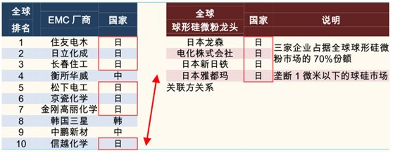 目前世界上只有中國(guó)、日本、韓國(guó)、美國(guó)等少數(shù)國(guó)家具備硅微粉生產(chǎn)能力,尤其是球形硅微粉,日本長(zhǎng)期占據(jù)壟斷地位。全球EMC排名中前十大廠商有7家是日系廠商,特別是中高端產(chǎn)品中有70%的市場(chǎng)為日系所占有,可見(jiàn)硅微粉下游EMC市場(chǎng)主要由日本主導(dǎo)。在這樣的情況下,日本硅微粉廠商發(fā)展迅速,孕育了龍森、電化株式會(huì)社、新日鐵和雅都瑪(信越化學(xué)參股企業(yè))等球形硅微粉龍頭廠商,供應(yīng)關(guān)系緊密,產(chǎn)業(yè)鏈相對(duì)封閉,新晉廠商很難接入供應(yīng)鏈。