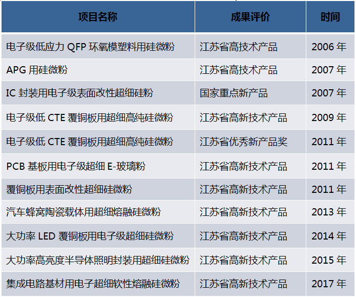 聯(lián)瑞新材技術(shù)研發(fā)成果一覽
