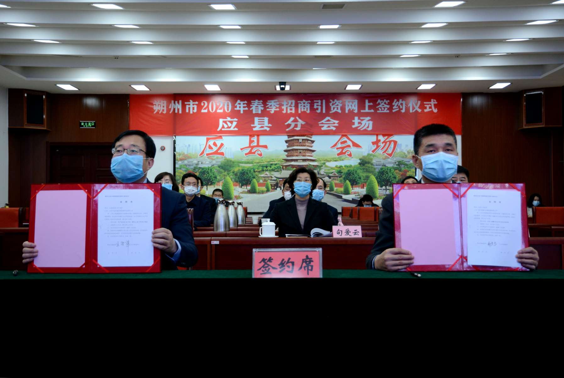 應(yīng)縣縣委副書記王晉軍代表縣經(jīng)濟(jì)技術(shù)開發(fā)區(qū)與山西中潔華盛潔凈能源科技有限公司網(wǎng)上簽約了年產(chǎn)活性炭10萬噸、高嶺土20萬噸加工項(xiàng)目,總投資5.2億元。郝建忠代表縣政府與浙江聯(lián)盛合眾新能源有限公司簽訂了應(yīng)縣100兆瓦農(nóng)光互補(bǔ)光伏發(fā)電項(xiàng)目,總投資7億元。