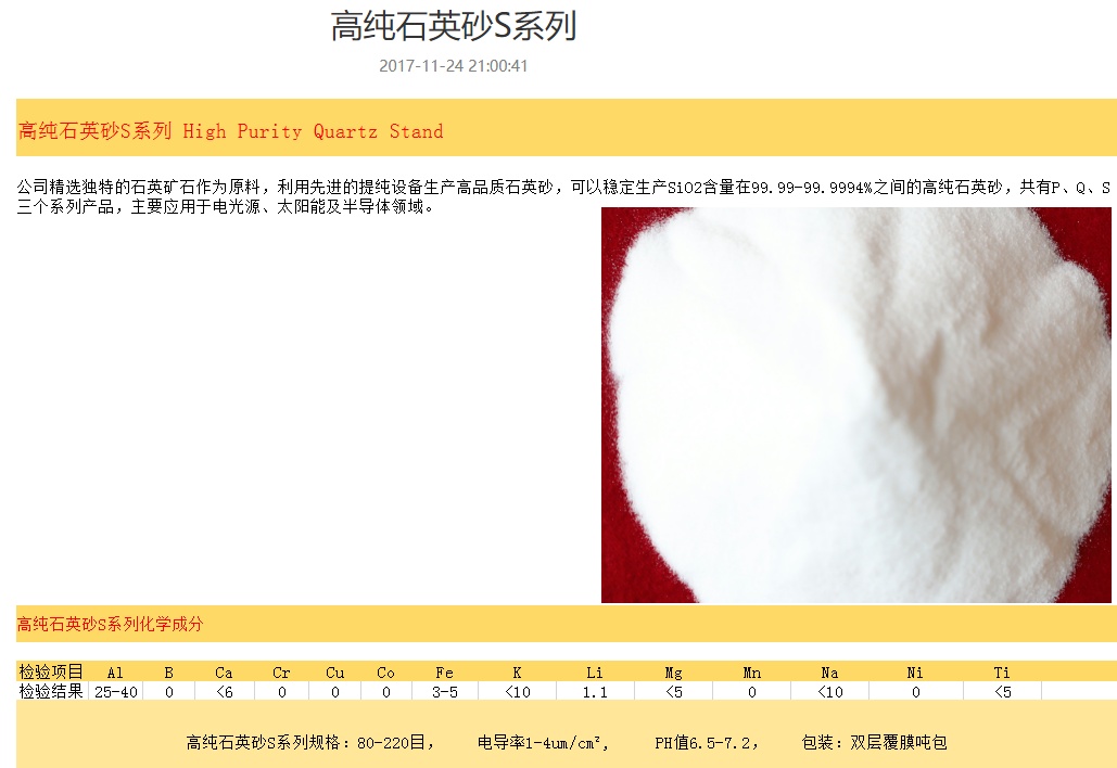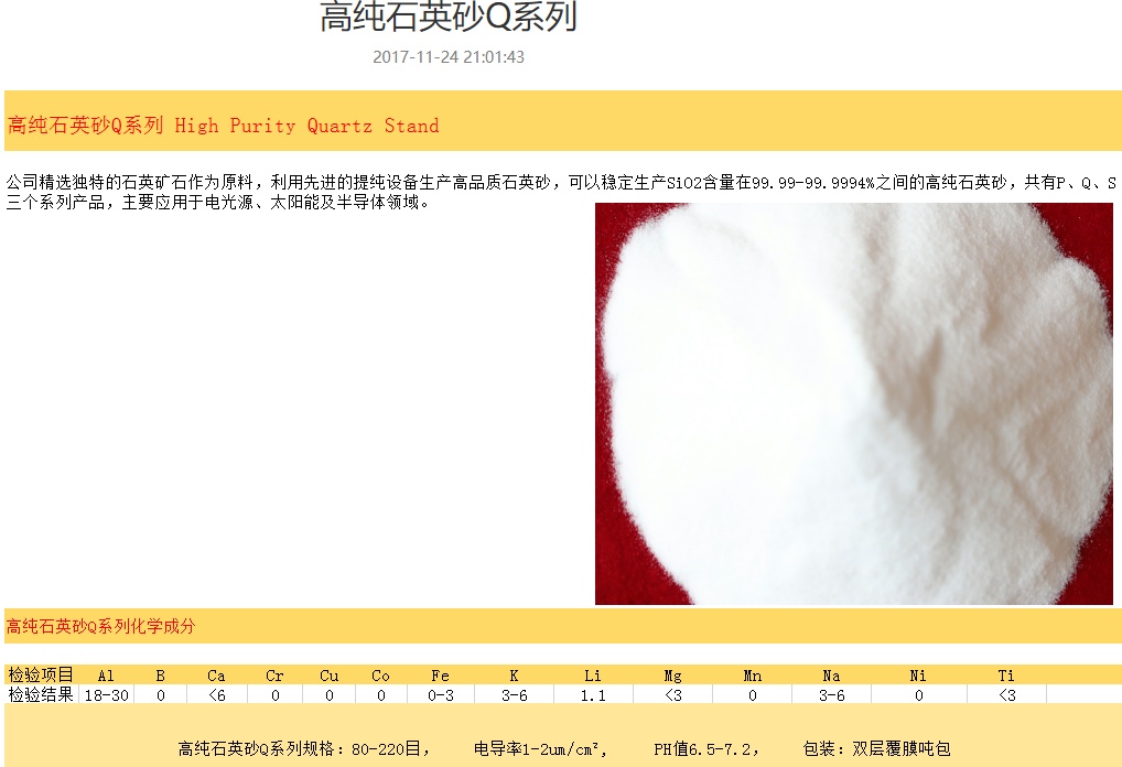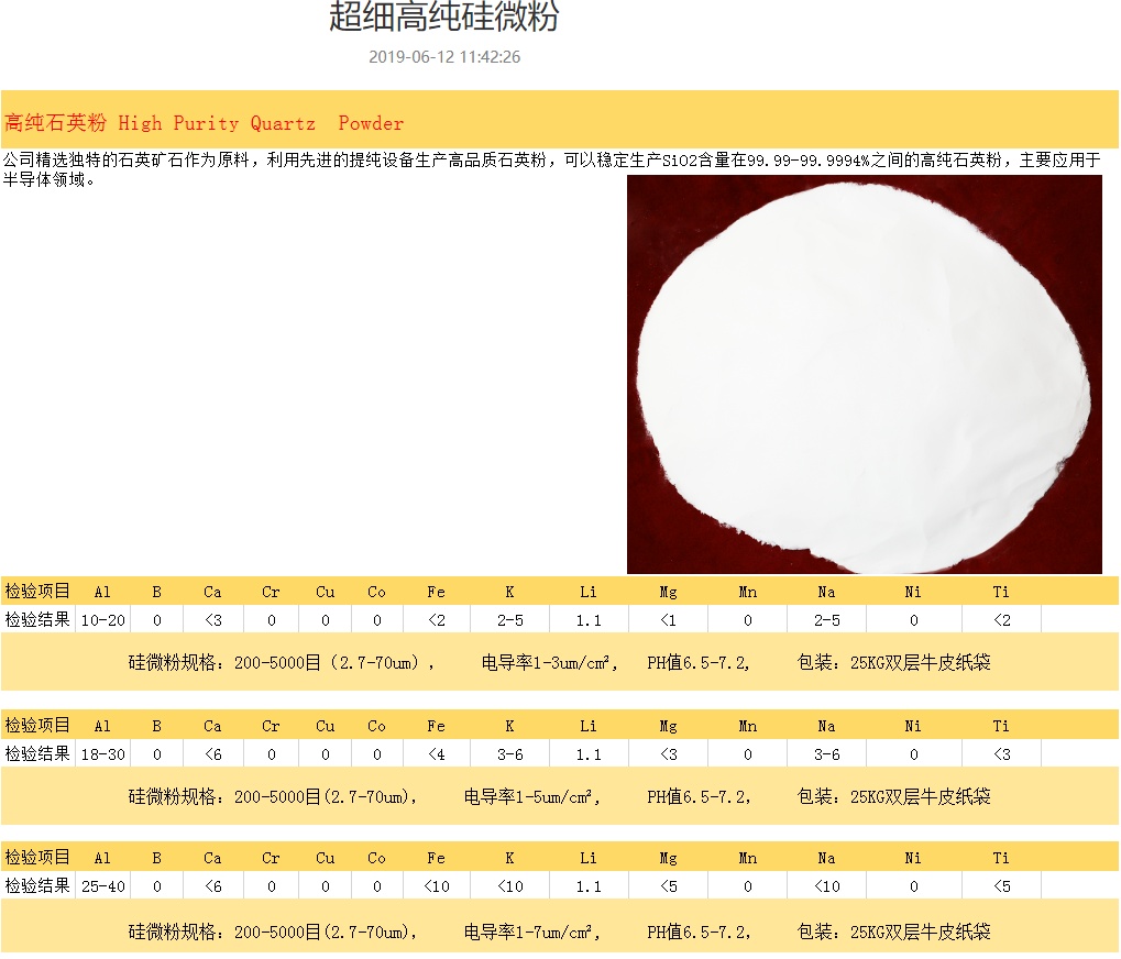 公司可年產普通石英砂、粉5000噸,精制石英砂、粉8000噸,高純石英砂10000噸,超細高純硅微粉5000噸,產品廣泛應用于熔煉石英、耐火材料、精密鑄造、砂輪磨料、高端石英玻璃、太陽能光伏、半導體、電子、光纖通訊、光學儀器、電子封裝、集成電路、激光、航天、軍工等高端技術行業(yè)。