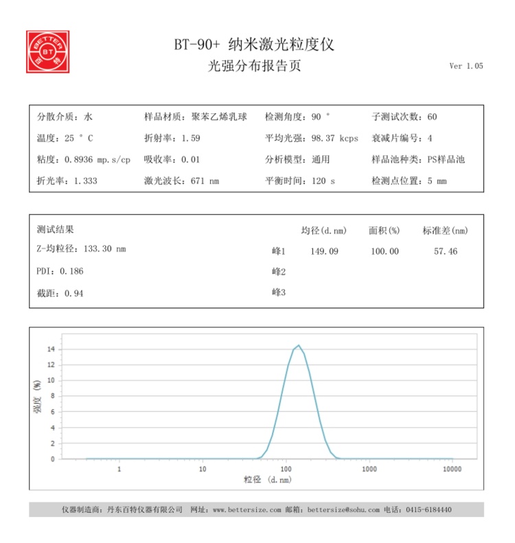 聚苯乙烯良好的性能離不開儀器的準(zhǔn)確檢測,百特公司最新出品的BT-90+納米激光高性能納米粒度儀,能夠?qū)Ω叻肿、膠體、自組裝膠束、生物大分子、蛋白、多肽、抗原、抗體、納米金屬/非金屬顆粒、磨料進(jìn)行檢測。