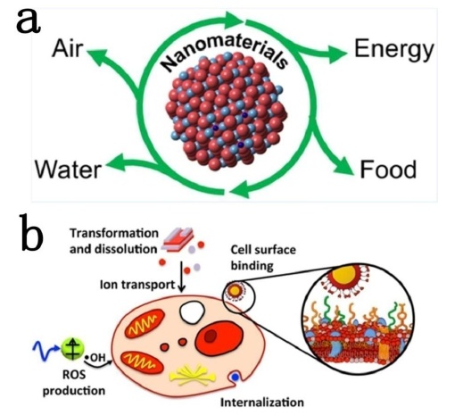 (a)納米材料與人類(b)納米顆粒與生物細(xì)胞初始相互作用的一些可能途徑