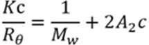 其中c為樣品的濃度,θ為測量的角度(散射角),Rθ 為θ角方向的瑞利散射比,Mw 為重均分子量,A2 為第二維利系數(shù),K為與(dn/dc)2相關(guān)的常數(shù)。