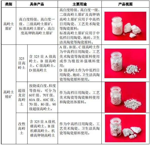 龍高股份高嶺土產(chǎn)品應用領域以陶瓷為主。高嶺土是生產(chǎn)瓷器的重要原料,龍高股份產(chǎn)品主要分為高嶺土原礦、325目高嶺土精礦、超級龍巖高嶺土、改性高嶺土、綜合利用產(chǎn)品五大類三十六種,其中,高嶺土精礦是高嶺土原礦加工而成,根據(jù)粒度不同分為325目高嶺土精礦、325目機碓高嶺土和超級龍巖高嶺土等,是中、高檔日用陶瓷、工藝美術瓷和高檔建筑陶瓷的優(yōu)質原材料。