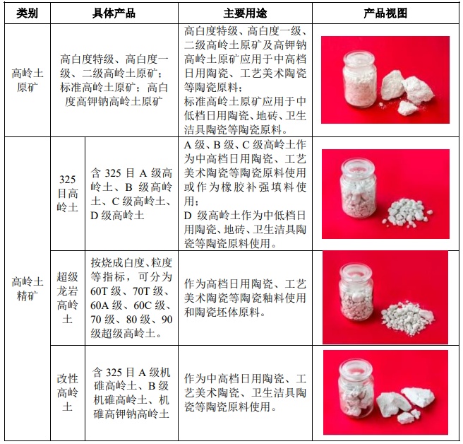 中國高嶺土有限公司主要產(chǎn)品