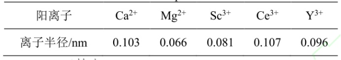 ZrO2是螢石類結(jié)構(gòu),Zr4+離子半徑為0.082nm,為了得到在常溫下穩(wěn)定的ZrO2晶體結(jié)構(gòu),一般考慮采用離子半徑與Zr4+相近的陽離子進(jìn)行摻雜,目前,研究較多的添加劑主要有兩類,以Y2O3為代表的稀土金屬氧化物和以CaO為代表的堿土金屬氧化物。