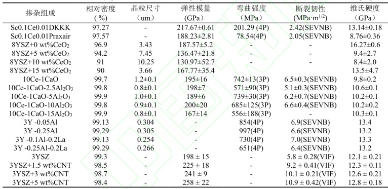 不同元素?fù)诫s量氧化鋯陶瓷的相對密度、晶粒尺寸與力學(xué)性能