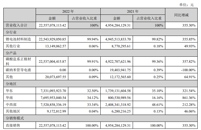 由于新能源汽車(chē)市場(chǎng)和儲(chǔ)能市場(chǎng)的迅速增長(zhǎng)以及上游原材料價(jià)格處于高位,2022年德方納米主要產(chǎn)品磷酸鹽系正極材料量?jī)r(jià)齊升,營(yíng)業(yè)收入規(guī)模和凈利潤(rùn)規(guī)模均實(shí)現(xiàn)較大幅度的增長(zhǎng)。