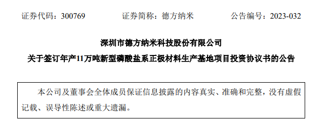 參考資料:德方納米2022年年度報(bào)告、關(guān)于簽訂年產(chǎn)11萬(wàn)噸新型磷酸鹽系正極材料生產(chǎn)基地項(xiàng)目投資協(xié)議書(shū)的公告