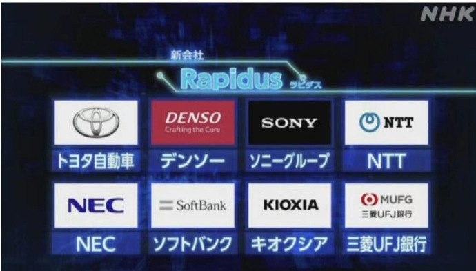 在此背景下,2022年8月,日本八大企業(yè)組成“聯(lián)合戰(zhàn)隊(duì)”,組建了一家名為“Rapidus”的半導(dǎo)體企業(yè)。這8家企業(yè)包括豐田、NTT、索尼、NEC、電裝、KIOXIA、軟銀和三菱UFJ銀行。