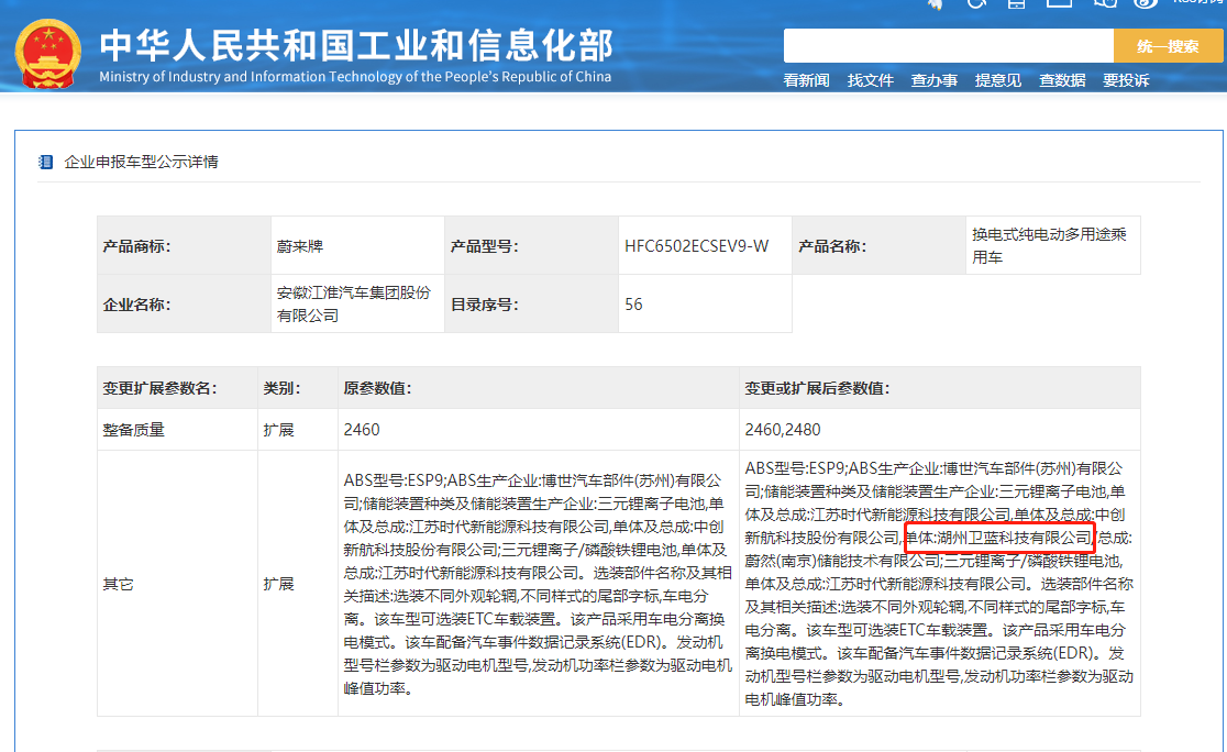 中國(guó)粉體網(wǎng)訊 近日,蔚來(lái)半固態(tài)電池上車有了新消息。據(jù)工信部最新的《道路機(jī)動(dòng)車輛生產(chǎn)企業(yè)及產(chǎn)品公告》變更擴(kuò)展公示顯示,蔚來(lái)擴(kuò)展了三款車的規(guī)格信息。三款車將開(kāi)始使用半固態(tài)電池,電池供應(yīng)商為蔚來(lái)的合作伙伴衛(wèi)藍(lán)新能源的子公司湖州衛(wèi)藍(lán)科技有限公司。
