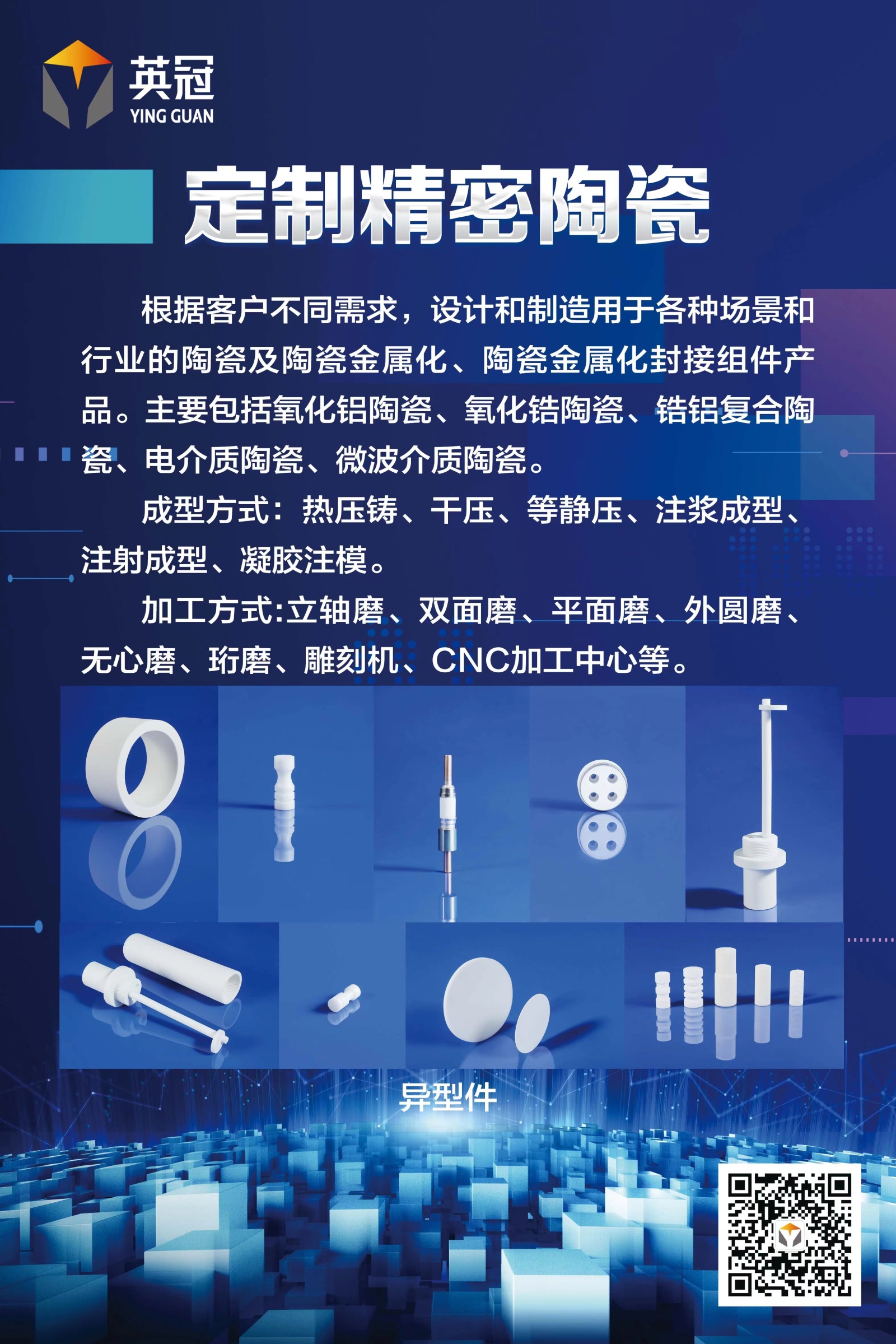 英冠陶瓷多年來深耕特種陶瓷行業(yè),積累了豐富的研發(fā)、生產(chǎn)實踐經(jīng)驗,培育了一支精干的人才隊伍,具有干壓、等靜壓、熱壓鑄、凝膠注模等成熟工藝,擁有高溫隧道燒結(jié)窯爐七座,精密陶瓷加工設(shè)備150余臺,高溫陶瓷厚膜金屬化、磁控濺射薄膜金屬化的大規(guī)模生產(chǎn)能力。是國家高新技術(shù)企業(yè),具有多項發(fā)明及實用新型專利。