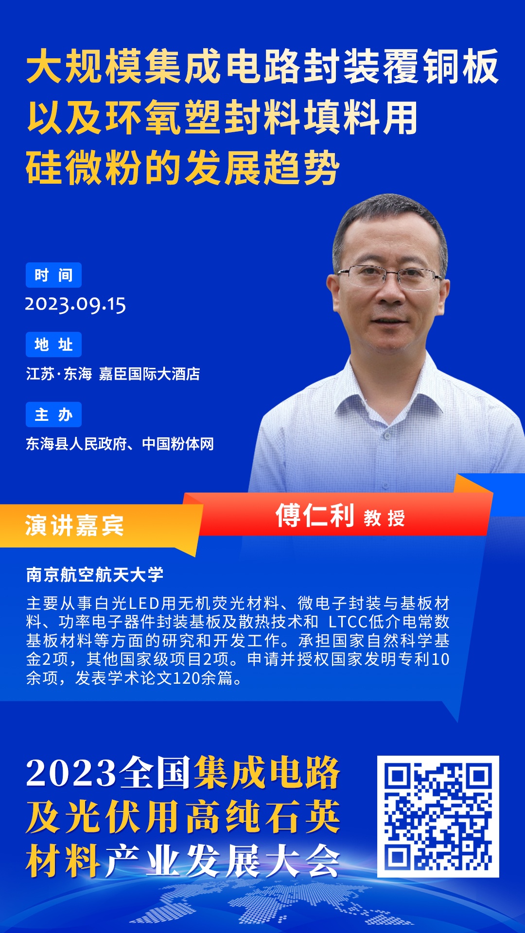 隨著高頻高速覆銅板以及先進(jìn)封裝材料行業(yè)的快速發(fā)展,其對硅微粉的性能提出了哪些新的要求?硅微粉又將朝著怎樣的方向發(fā)展?2023年9月15日,中國粉體網(wǎng)將在江蘇東海舉辦“2023全國集成電路及光伏用高純石英材料產(chǎn)業(yè)發(fā)展大會”。屆時,南京航空航天大學(xué)傅仁利教授將帶來題為《大規(guī)模集成電路封裝覆銅板以及環(huán)氧塑封料填料用硅微粉的發(fā)展趨勢》的報(bào)告,詳細(xì)解讀硅微粉的發(fā)展趨勢。