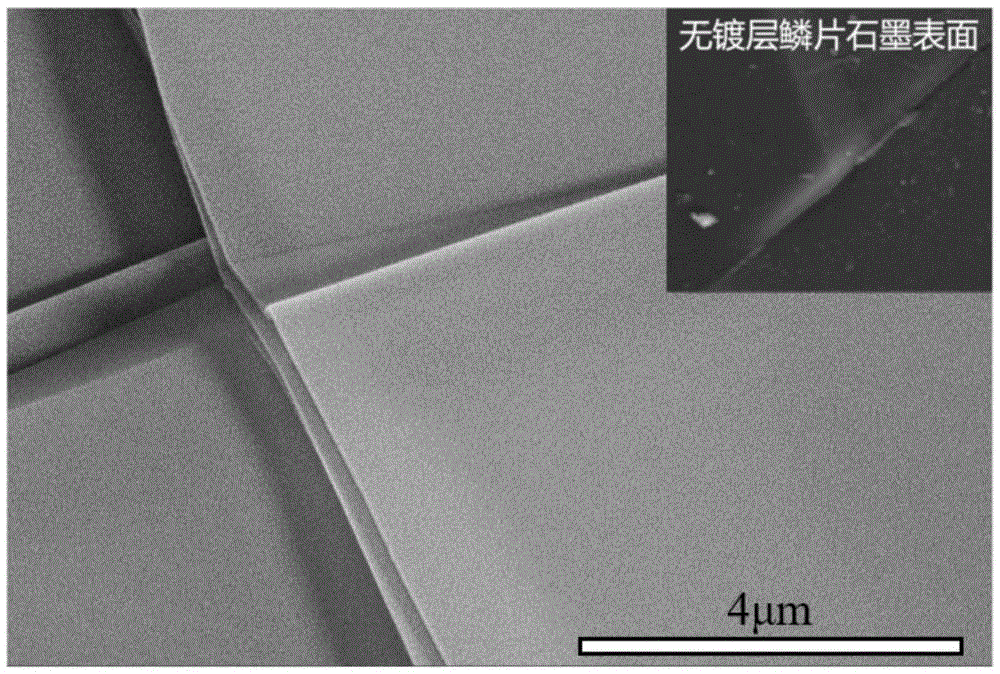 本發(fā)明濕混控制鱗片石墨表面鍍層金屬含量及分布,在高溫熔鹽環(huán)境中進(jìn)行反應(yīng),最終可以在鱗片石墨表面制備出具有覆蓋度高、厚度薄、分布均勻、形貌可調(diào)節(jié)的納米級(jí)碳化物層,實(shí)現(xiàn)了鍍層在鱗片石墨表面平整及缺陷處的全覆蓋。可以通過(guò)調(diào)整工藝參數(shù)如金屬含量、鍍覆時(shí)間、鍍覆溫度等實(shí)現(xiàn)對(duì)鍍層厚度的調(diào)節(jié),從而滿足高導(dǎo)熱鱗片石墨增強(qiáng)金屬基復(fù)合材料增強(qiáng)體需要。