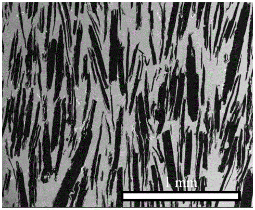 本發(fā)明首先將鱗片石墨預(yù)處理,然后通過(guò)熔鹽法在鱗片石墨表面鍍覆納米級(jí)碳化鉻鍍層,以液相擠壓的方式獲得高取向性鱗片石墨預(yù)制體,最后通過(guò)氣壓浸滲的方式制備出具有高致密度高取向性的鱗片石墨/銅復(fù)合材料,制備出的復(fù)合材料具有高取向性、高致密度、高熱導(dǎo)率及低密度的特點(diǎn),可以滿足電子器件中散熱材料的性能需求。