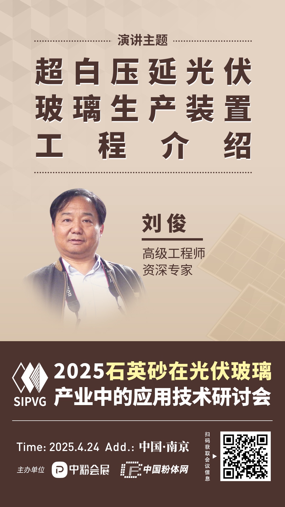 2025年4月24日,由中國(guó)粉體網(wǎng)、中粉會(huì)展主辦的“2025石英砂在光伏玻璃產(chǎn)業(yè)中的應(yīng)用技術(shù)研討會(huì)”將在江蘇南京召開,屆時(shí)業(yè)內(nèi)資深專家劉俊高工將做題為《超白壓延光伏玻璃生產(chǎn)裝置工程介紹》的報(bào)告。
