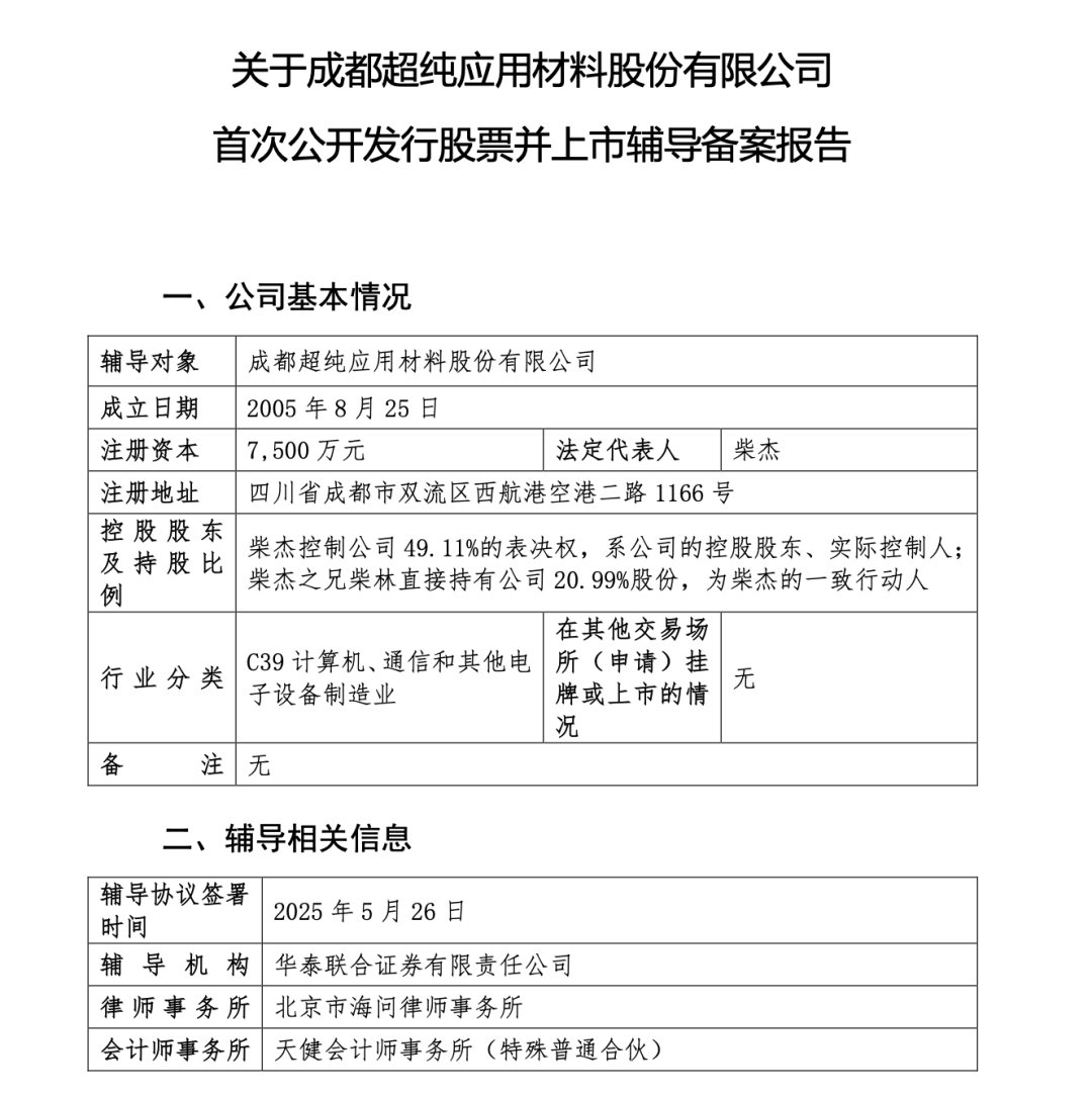 中國粉體網(wǎng)訊 近日,證監(jiān)會官網(wǎng)披露了成都超純應(yīng)用材料股份有限公司(以下簡稱“成都超純”)首次公開發(fā)行股票并上市輔導(dǎo)備案報告,成都超純正式拉開A股IPO籌備工作的帷幕。