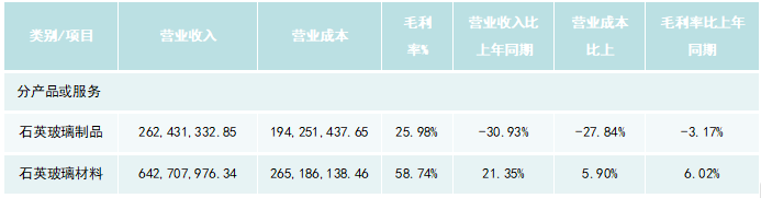 2025年上半年,菲利華營收9.08億元(同比降0.77%),毛利率49.22%(升6.37個百分點)。石英玻璃材料營收6.43億元(增21.35%)、毛利率58.74%(升6.02個百分點),受益半導體復蘇;制品營收2.62億元(降30.93%)、毛利率25.98%(降3.17個百分點),受光伏遇冷影響。