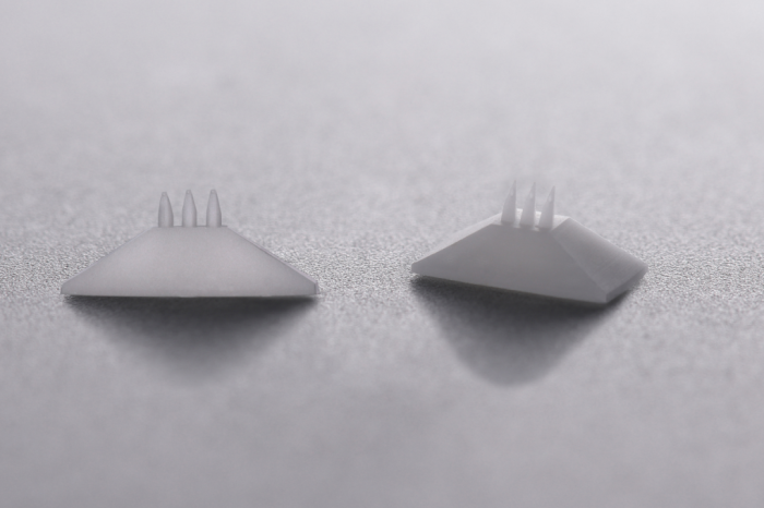 陶瓷空心微針:采用氧化鋁和氧化鋯等高強(qiáng)度陶瓷材料,針尖僅3微米,陶瓷材料的高強(qiáng)度特性使其可反復(fù)穿刺100次以上,無(wú)斷針、彎針風(fēng)險(xiǎn),確保使用穩(wěn)定可靠。支持無(wú)痛經(jīng)皮給藥,提高藥物利用率,部分藥物利用率從10%提升至90%,為藥物注射提供了更高效的選擇。應(yīng)用于醫(yī)美(玻尿酸、膠原蛋白注射)及藥物遞送(胰島素、疫苗)。
