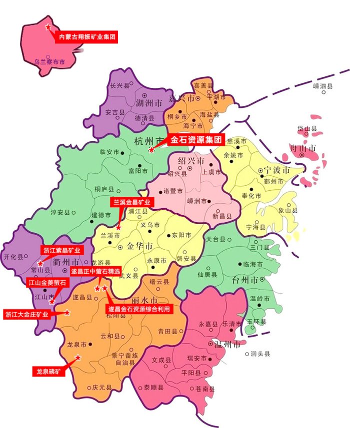 公司總部位于杭州,下屬20家全資或控股子公司,主要位于浙江、安徽、江西以及內蒙古自治區(qū)。公司目前擁有已查明保有單一螢石資源儲量約2,700萬噸,與包鋼股份合作開發(fā)的伴共生螢石資源量1.3億噸,是我國螢石資源儲量、開采及生產加工規(guī)模遙遙領先的企業(yè),也是我國非金屬礦采選行業(yè)第一家上市公司。