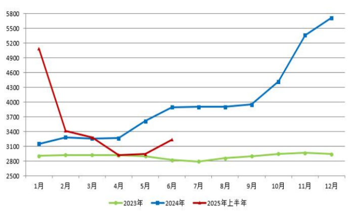2025年上半年,國(guó)內(nèi)氧化鋁價(jià)格呈現(xiàn)階段性調(diào)整態(tài)勢(shì)。年初以來(lái),國(guó)內(nèi)氧化鋁行業(yè)保持高位開(kāi)工水平,新增產(chǎn)能有序釋放,供應(yīng)端處于良性擴(kuò)張周期,疊加庫(kù)存的合理累積,市場(chǎng)供需關(guān)系的動(dòng)態(tài)平衡推動(dòng)價(jià)格進(jìn)入理性回調(diào)階段。進(jìn)入5月,隨著部分氧化鋁企業(yè)根據(jù)市場(chǎng)形勢(shì)優(yōu)化生產(chǎn)節(jié)奏、階段性調(diào)整產(chǎn)量,市場(chǎng)供應(yīng)增量得到合理調(diào)控,同時(shí)幾內(nèi)亞礦權(quán)事件帶來(lái)的原料端不確定性,為市場(chǎng)注入階段性活力,國(guó)內(nèi)氧化鋁價(jià)格順勢(shì)迎來(lái)回升反彈,展現(xiàn)出市場(chǎng)自我調(diào)節(jié)的靈活韌性。2025年上半年國(guó)內(nèi)氧化鋁均價(jià)為3495元/噸左右,較去年同期相比上漲約3%。