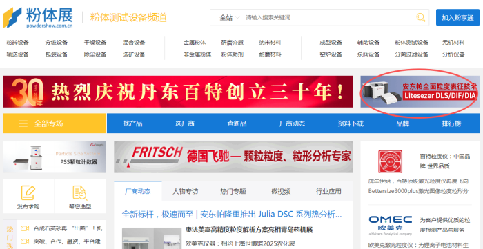 儀器頻道置頂:在粉體儀器頻道首頁設置固定廣告位,重點展示粒度分析儀、流變儀等核心產(chǎn)品;