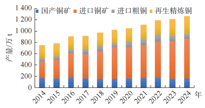 2014—2024年中國銅冶煉原料結(jié)構(gòu)