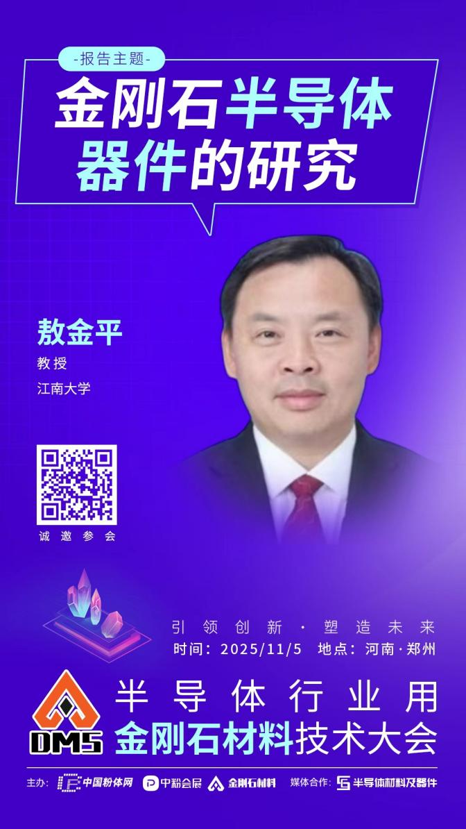 2025年11月5日,中國粉體網(wǎng)將在河南•鄭州舉辦“2025半導體行業(yè)用金剛石材料技術(shù)大會”。屆時,我們邀請到江南大學敖金平教授出席本次大會并作題為《金剛石半導體器件的研究》的報告,報告將介紹團隊在日盲紫外探測器、金剛石光電探測器響應度提升及性能優(yōu)化等方面的研究,并對金剛石半導體電力電子器件、微波功率器件的研究作展望。