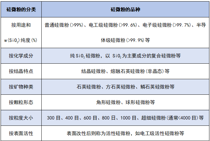 根據(jù)制作工藝分為:結(jié)晶硅微粉、熔融硅微粉、活性硅微粉、方石英硅微粉、復(fù)合硅微粉等。