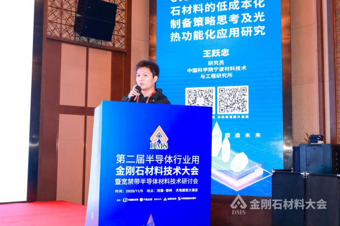 中國(guó)科學(xué)院寧波材料技術(shù)與工程研究所王躍忠研究員(朱毅代)作《CVD單晶/多晶金剛石材料的低成本化制備策略思考及光熱功能化應(yīng)用研究》報(bào)告
