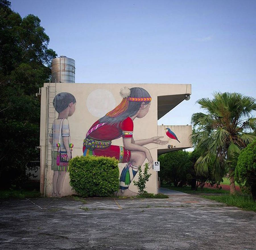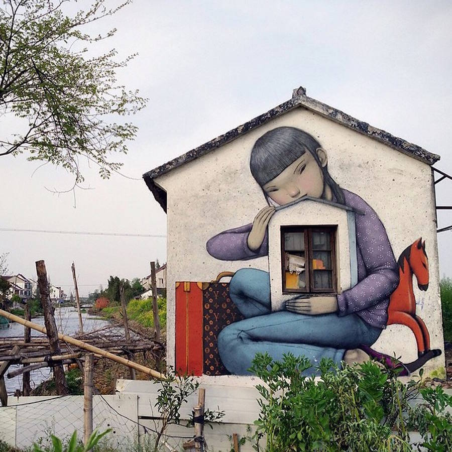 國際知名的法國巴黎街頭藝術家Julien Seth Malland(又名Seth Globepainter),Julien Set Malland的作品通常包含著憂郁的兒童和彩虹這兩個元素。作品所展示的畫面,觸動視覺。他們背對著大眾,背對著整個城市,注意力完全被艷麗的色彩所吸引,直至融入其中,不為所動。