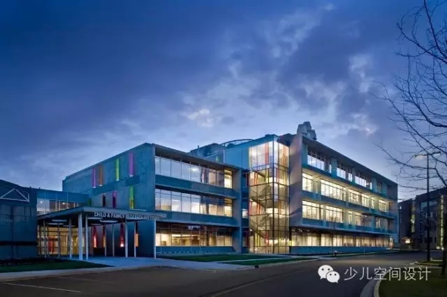這是一個擴建項目,新舊元素被整合,并裝點上一致,跳躍的彩色玻璃達到統一。與以往的安裝方式不同,有一部分彩色玻璃側安在墻上,就像樓房上的豎向廣告牌一樣。玻璃在與陽光的舞蹈中,給建筑帶來變化,有趣的色彩板塊。兒童與家庭研究中心位于兒童與婦女健康研究中心的46英畝校園內。各方面皆是加拿大西部規模最大研究院,研究院同時還涉足其它臨床研究領域,具有動物保健設施,商店設施,教育中心等其它功能。該項目是一個擴建,與原有建筑整合后,面積達到了11924平方米。